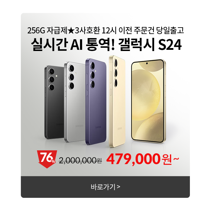 S급 실시간 AI 통역 기능 탑재★삼성 갤럭시S24 256G 공기계 알뜰폰, 3사호환 12시이전 주문건 당일출고