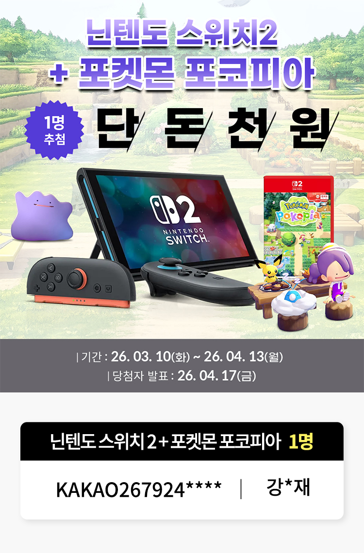 • ★천원딜 58차 닌텐도 스위치2+포켓몬 포코피아 당첨자 발표★