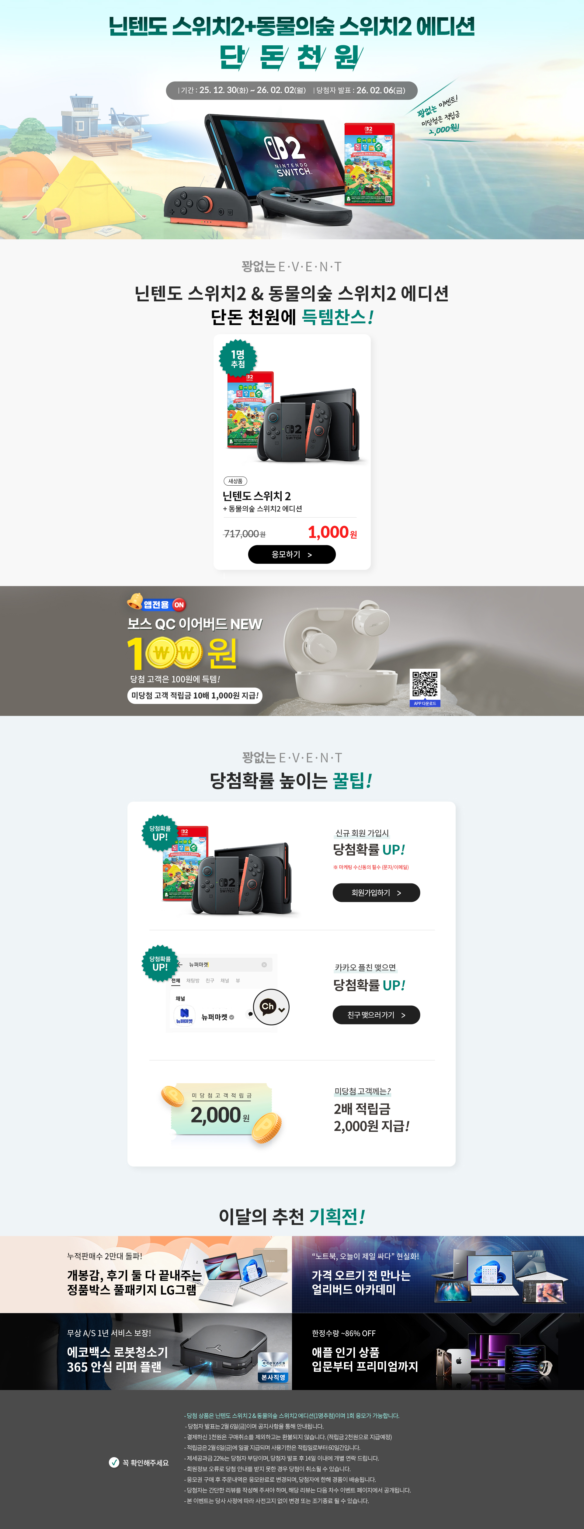 기획전 LG그램 정품박스 풀패키지 특별행사★ 이벤트 T멤버십 상시 혜택 13,000원 즉시 할인 기획전 ★닌텐도 스위치2 + 동물의숲 스위치2 에디션이 단돈천원★