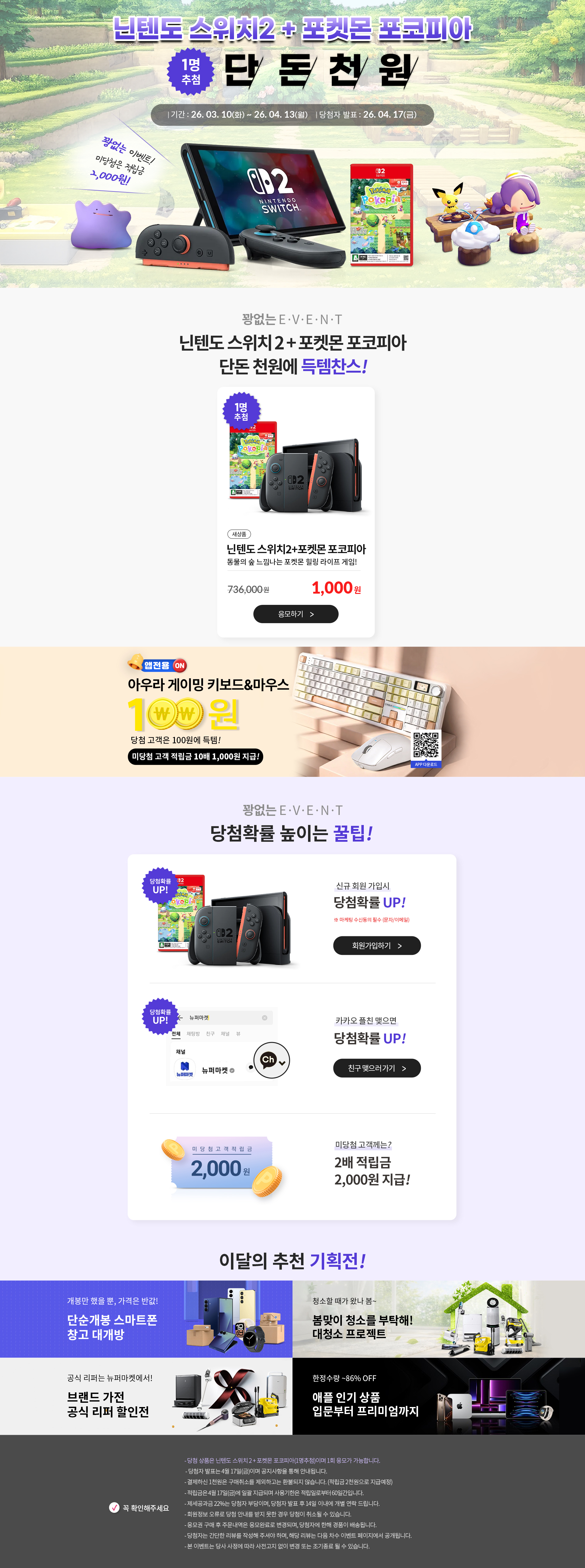 기획전 개봉만 했는데 가격은 반값!★단순개봉 창고개방★ 기획전 ★노트북, 오늘이 제일 싸다★가격 오르기 전 만나는 라스트찬스 특가 기획전 ★닌텐도 스위치2 + 포켓몬 포코피아 단돈천원★