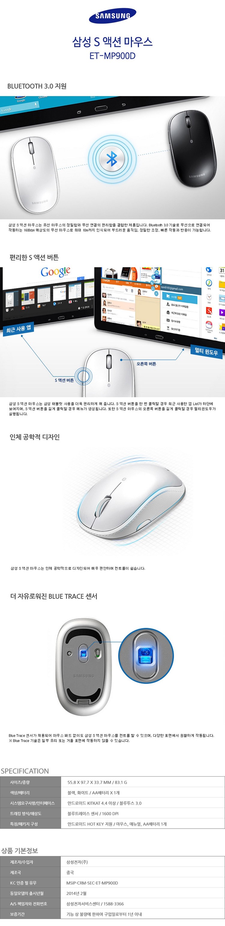 [삼성] 삼성전자 블루투스 S액션마우스 (편리한S액션버튼/인체공학적 디자인/블루투스3.0/블루트레이스센서/1600DPI)