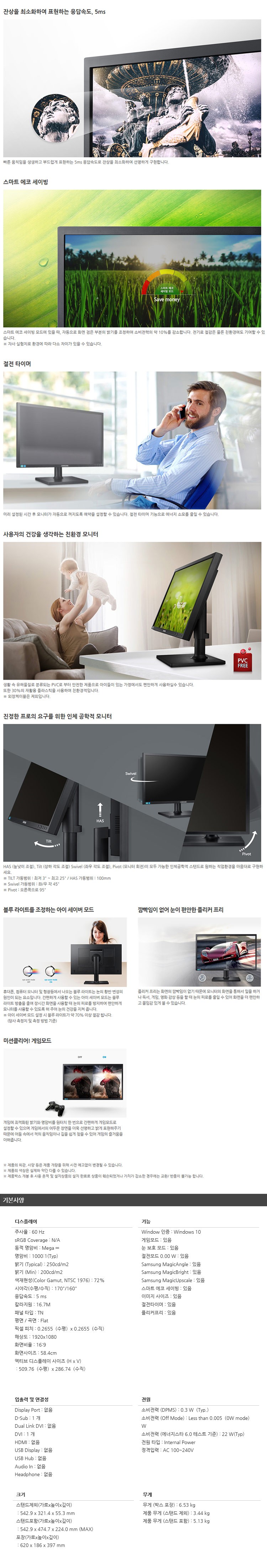 LS23E45KBSS (1920x1080해상도/16:9/틸트/응답속도 5ms/1000:1명암비/사이즈 542X321.4X397mm/LED/16:9/23인치 LED)