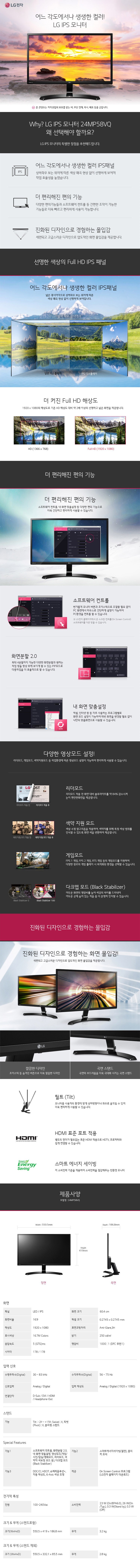 24MP58VQ(24인치/LED/1920x1080(FHD)/60Hz/화면비 16:9/명함비 1000:1/광시야각 178도/응답속도 5ms/HDMI, D-Sub,DVI/틸트/무게 3.2kg/사이즈 550x419x186mm)