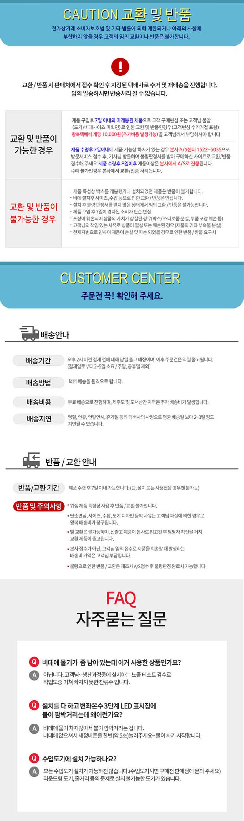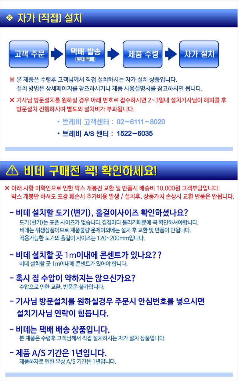 반품, AS, 교환처리시 택배서비스를 이용하여 이루어지고 있습니다. 서비스 이용시 착오없으시기 바랍니다.