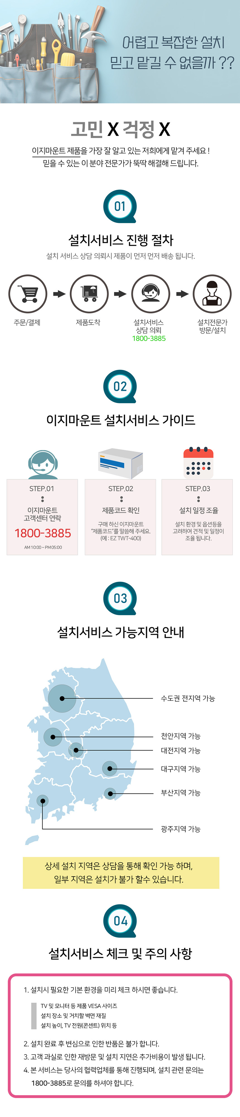 TV벽걸이 설치를 위한 작업완료 이후 제품을 환불할 경우 벽타공의 보상은 지급하지 않습니다.