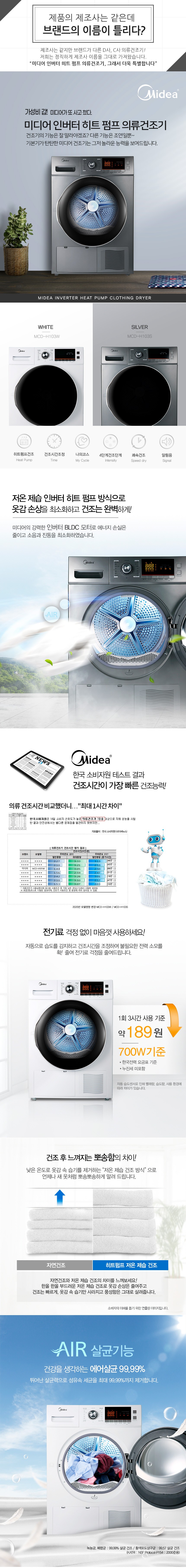 MCD-H103S / 히트펌프 건조 / 건조시간 조정가능 / 4단계 건조단계 / 쾌속건조 / 인버터 BLDC 모터
