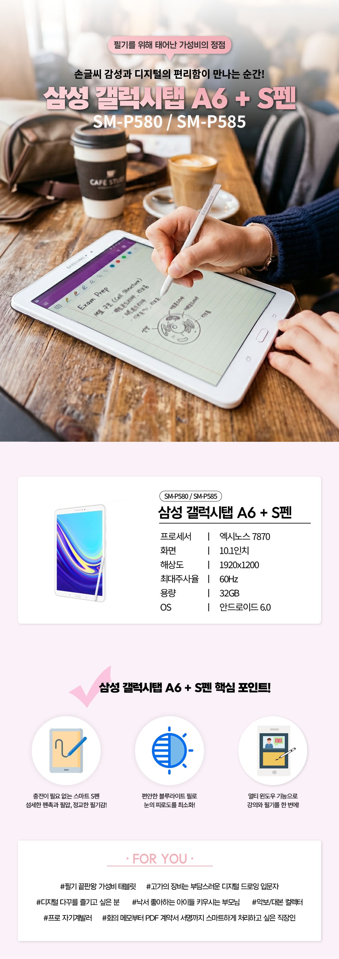 ★가성비 끝판왕★ 대화면 디스플레이! 어디에서나 편리하게 휴대가 가능한 554g의 무게를 자랑하는 삼성 갤럭시탭 A6를 런칭하였습니다~ S펜도 같이 제공되어 언제 어디서든 떠오르는 아이디어를 기록해 보세요 (。・∀・)ノ゙