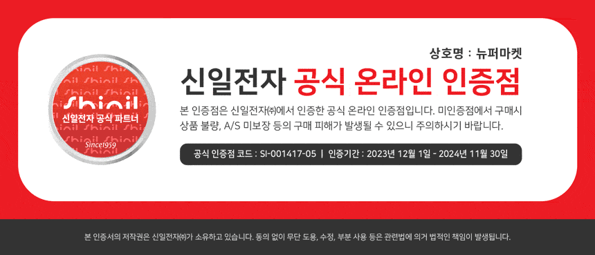 제품구매시 뉴퍼케어 무상보증 1년을 구매하시면 배송일로부터 1년간 무상보증을 받으실 수 있습니다.