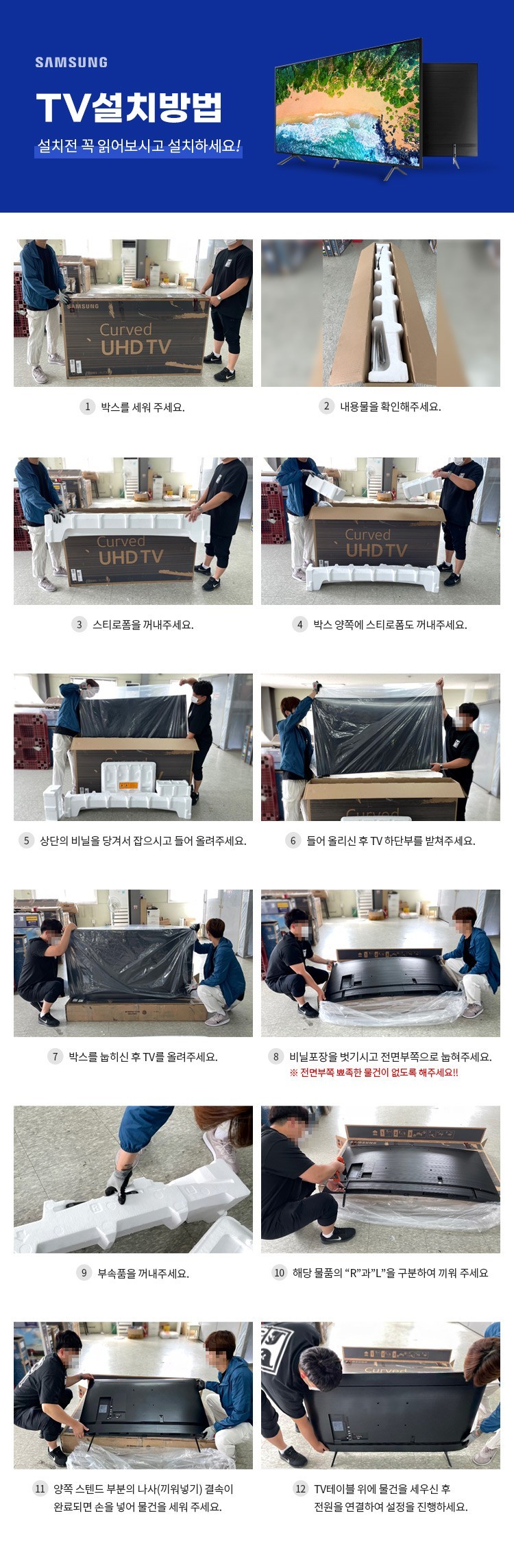 TV벽걸이 설치를 위한 작업완료 이후 제품을 환불할 경우 벽타공의 보상은 지급하지 않습니다.