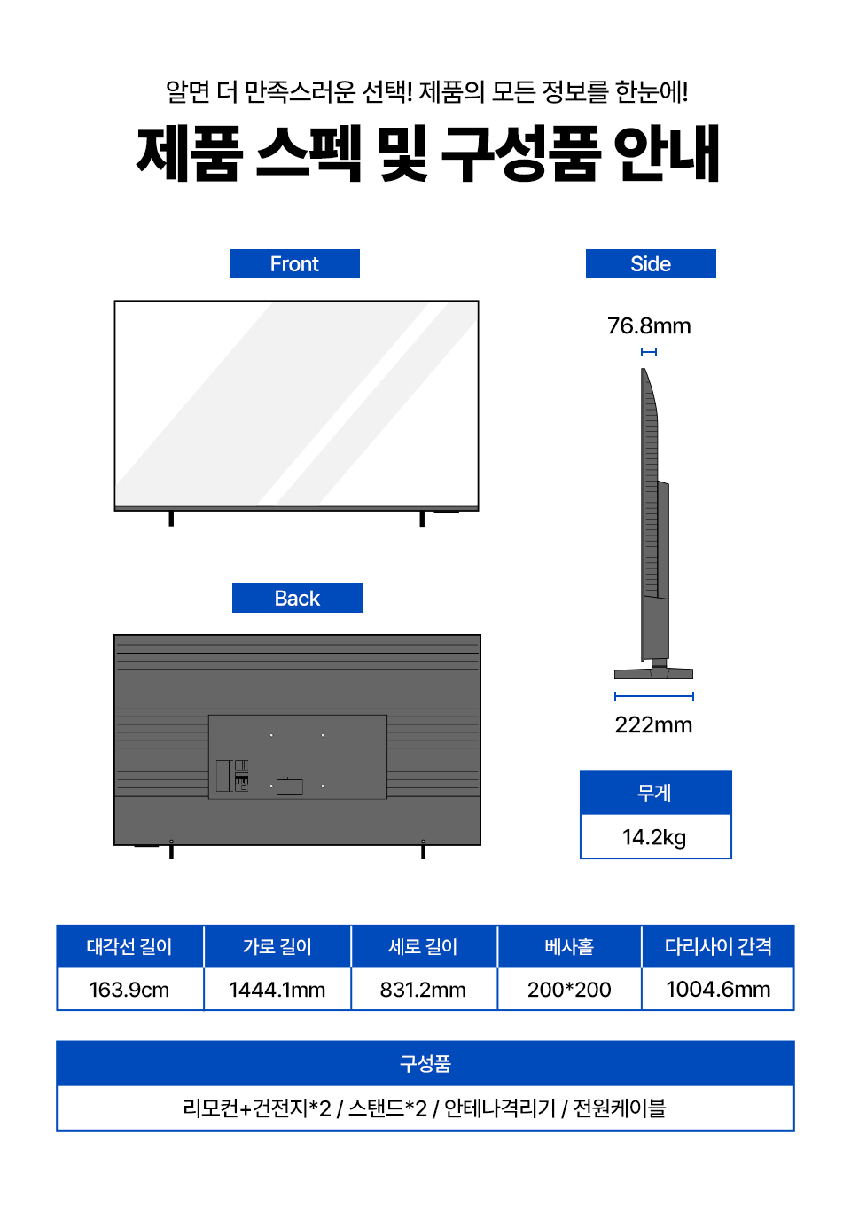 대형가전의 경우 설치장소 협소로 인한 설치 불가시 배송물류비는 고객님께서 부담하셔야 합니다. (구매전 사이즈확인 필수)