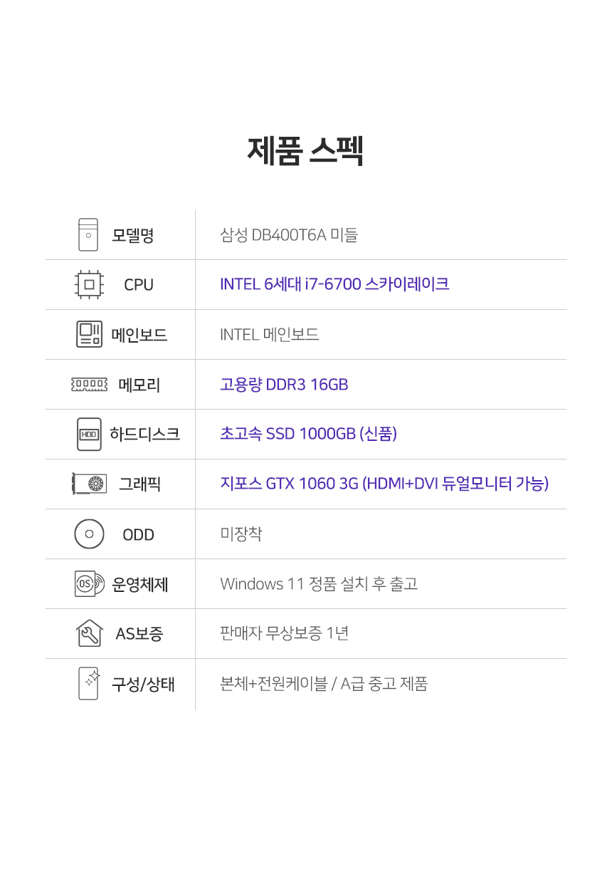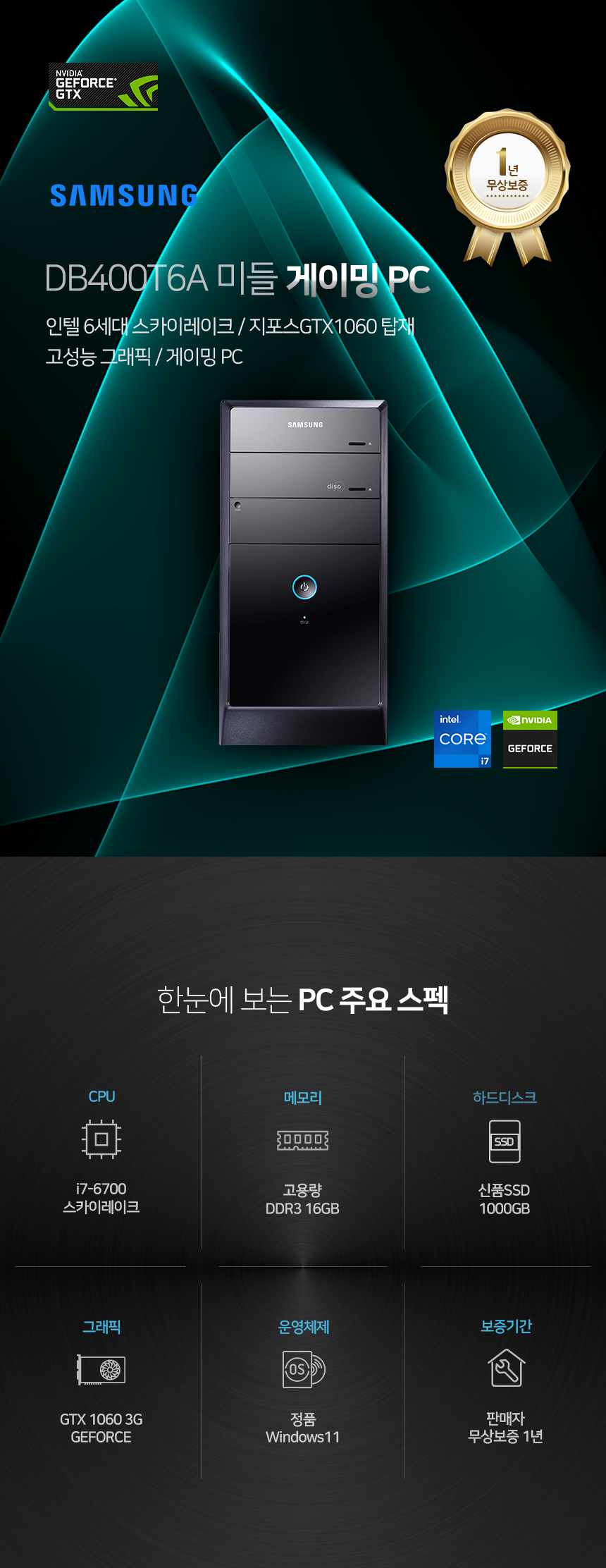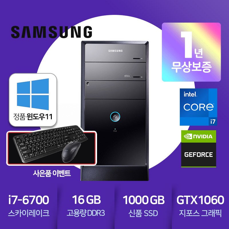 DB400T6A(i7-6700 스카이레이크/DDR3-16GB/신품SSD1000GB/지포스GTX1060 3G/윈도우11/A급리퍼)