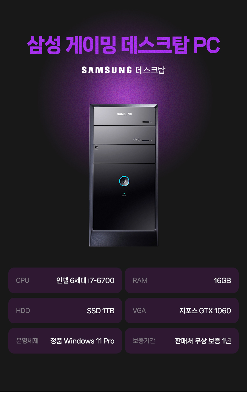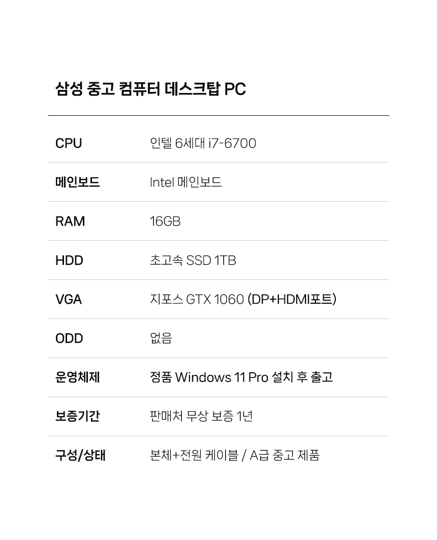 DB400T6A(i7-6700 스카이레이크/DDR3-16GB/SSD1TB/지포스GTX1060 3G/윈도우11/A급리퍼)