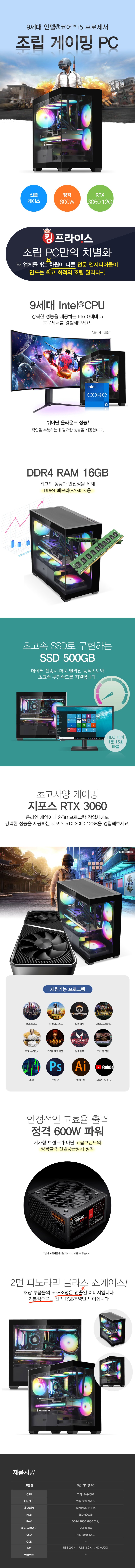 (인텔 코어 I5-9400F/DDR4 16G/SSD 500G/메인보드 인텔300시리즈 /그래픽카드 RTX 3060 12GB/파워 정격600W/윈도우11프로/신품 케이스)
