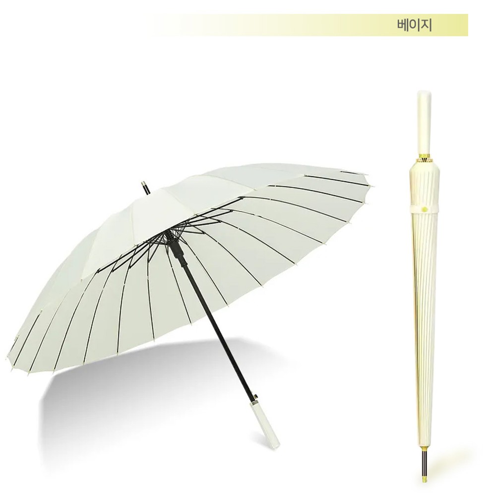 커플/패밀리/골프장 등 3인도 가능한 넉넉한 사이즈! 내구성이 우수해 비바람에도 강해요~! 24K 살대로 튼튼함과 동시에 멋내기용으로 OK! 특수 제작 고급 재질 원단으로 빗물이 스며들지 않아 털어내면 끝! EZ 골프 우산 하나 장만하세요~!