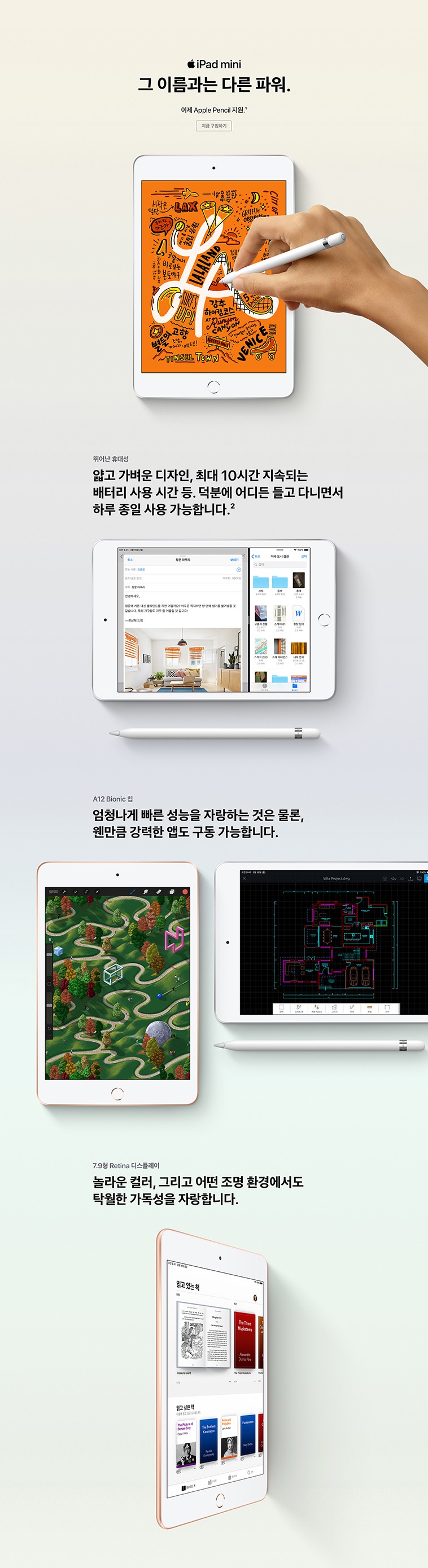 그 이름과는 다름 파워 아이패드 미니 5세대를 자사몰 단독 한정수량으로 론칭하였습니다. 용량과 색상이 선택가능하니, 구매에 참고하세요.