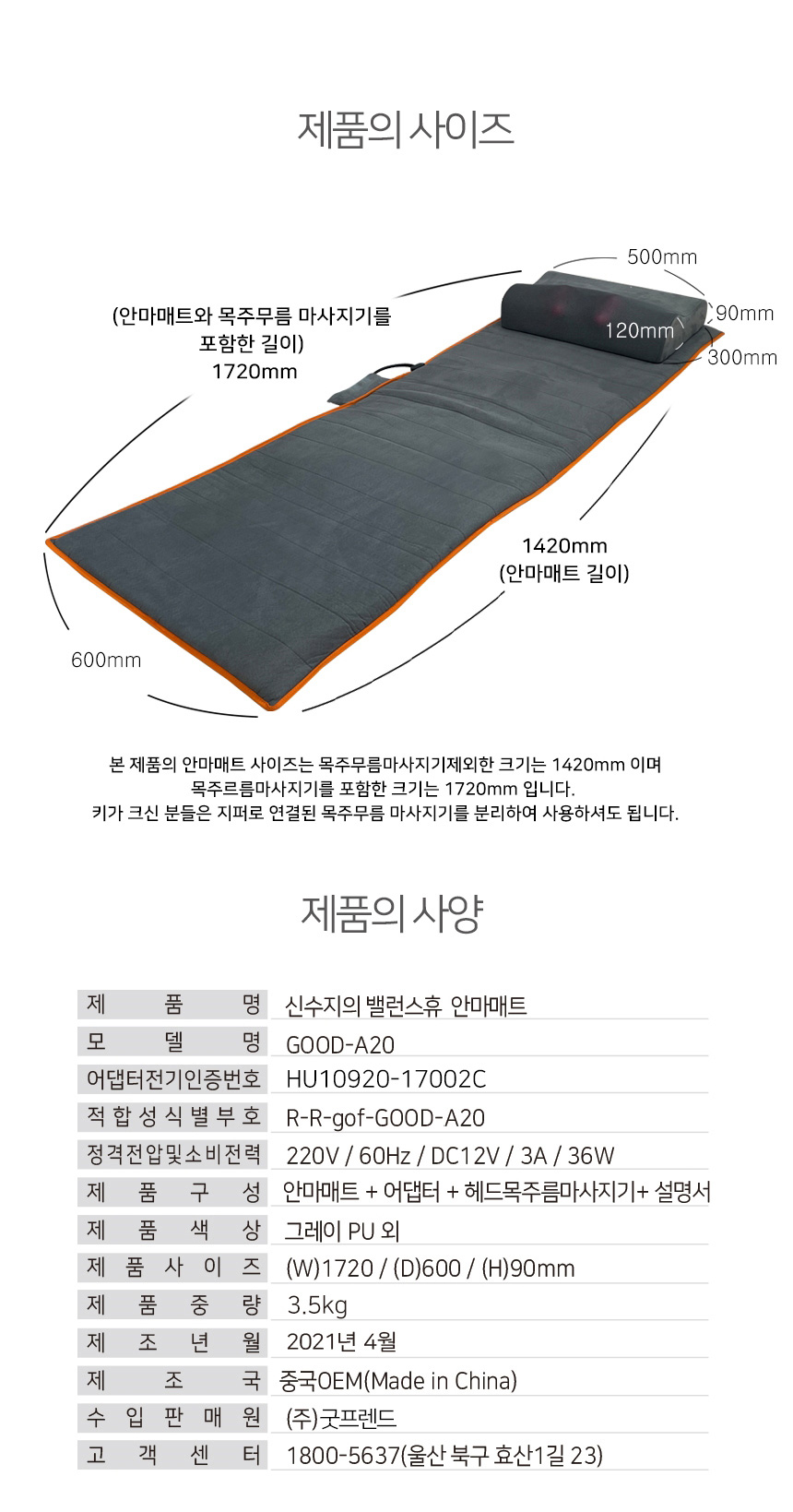 온열매트 / 안마매트 / 온열안마매트 / 모델명 : GOOD-A20