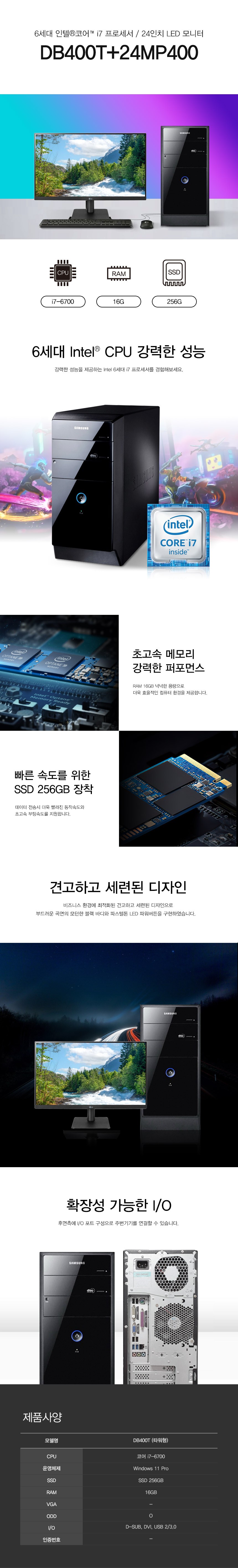 DB400T6B+24MP400 ]삼성DB400T6B I7-6700/RAM16/SSD256/WIN11정품+24MP400 LED 24인치 모니터i