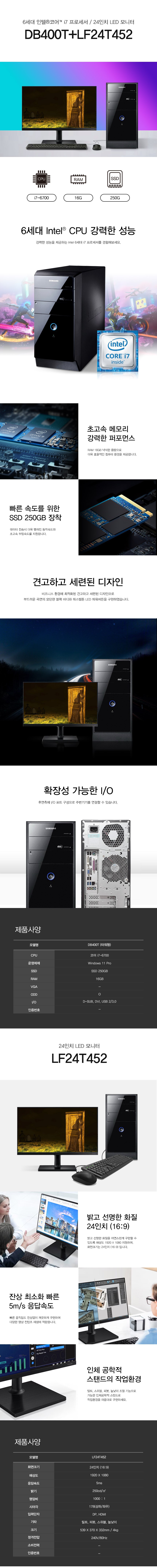 DB400T6B+LF24T452 ]삼성DB400T6B I7-6700/RAM16/SSD250/WIN11정품+ 24인치 모니터i