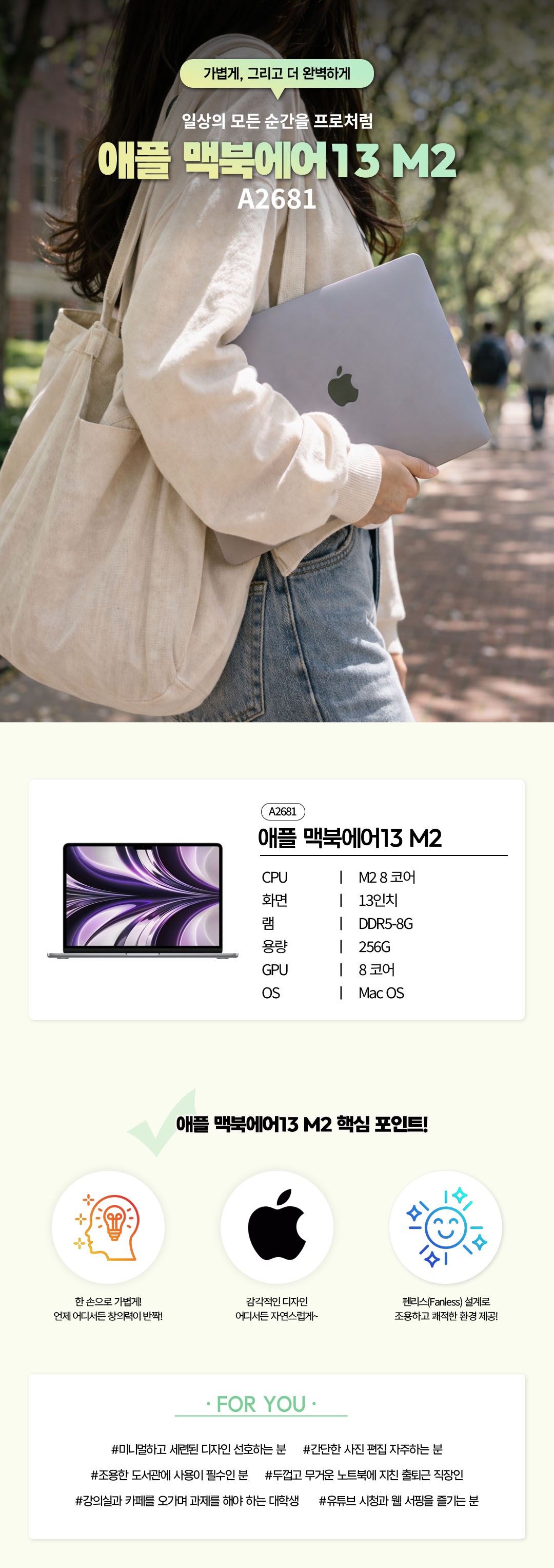 A2681(Apple M2 8 코어3500 MHz/DDR5-8G/SSD 256G/APPLE GPU 8CORE/Mac OS)