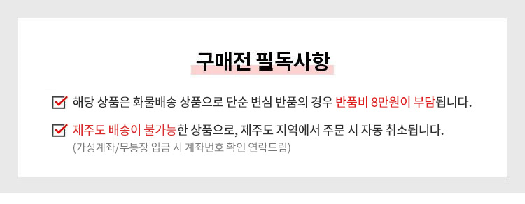 불량증상이 확인되지 않는 경우 왕복택배비용이 발생될 수 있습니다.