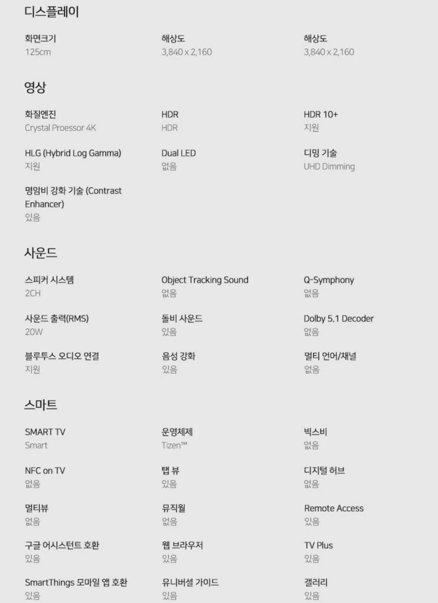 S급 크리스탈 4K UHD 50인치 스마트TV 50CU7000
