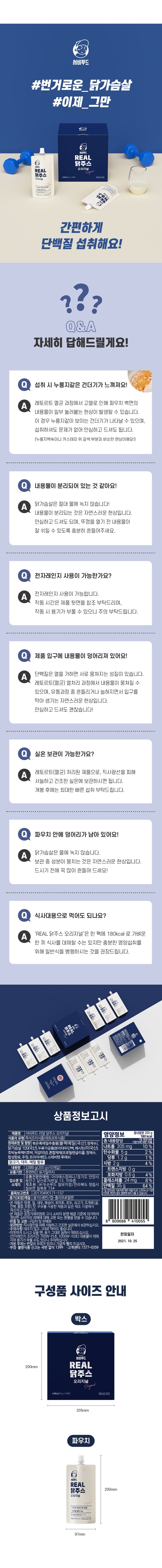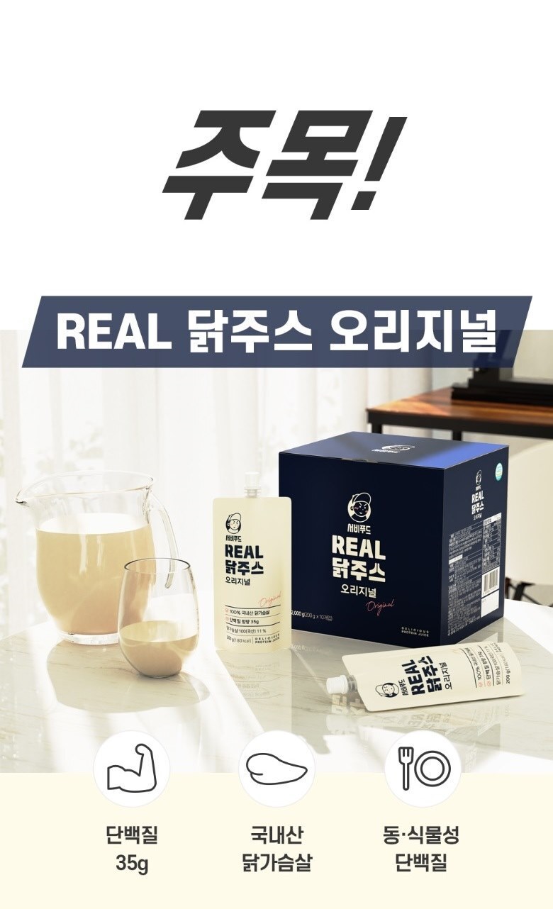 최고의 우승자들이 마시는 프리미엄 단백질 쉐이크, 닭 특유의 비린맛 완벽 커버! 칼로리는 낮추고 단맛은 살리고! 운동 후 필수 식품! 서비푸드 리얼 닭가슴살 쉐이크를 최저가에 소개드립니다.
