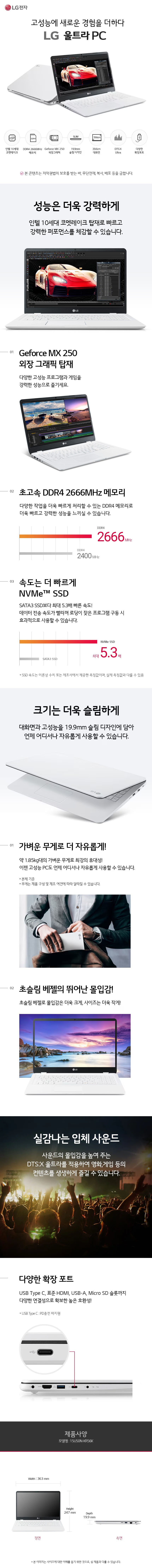 고성능 10세대 CPU 탑재! 가벼운 무게로 더 자유롭게! 성능과 가성비를 모두 잡은 스마트한 선택. LG 울트라PC 15U50N 게이밍북이 돌아왔습니다. 코어i5 프로세서와 지포스 MX250 그래픽카드, 그리고 16GB 메모리의 조합으로 업무는 물론 영상 편집, 디자인, 캐주얼 게이밍까지 부드럽게 소화합니다.