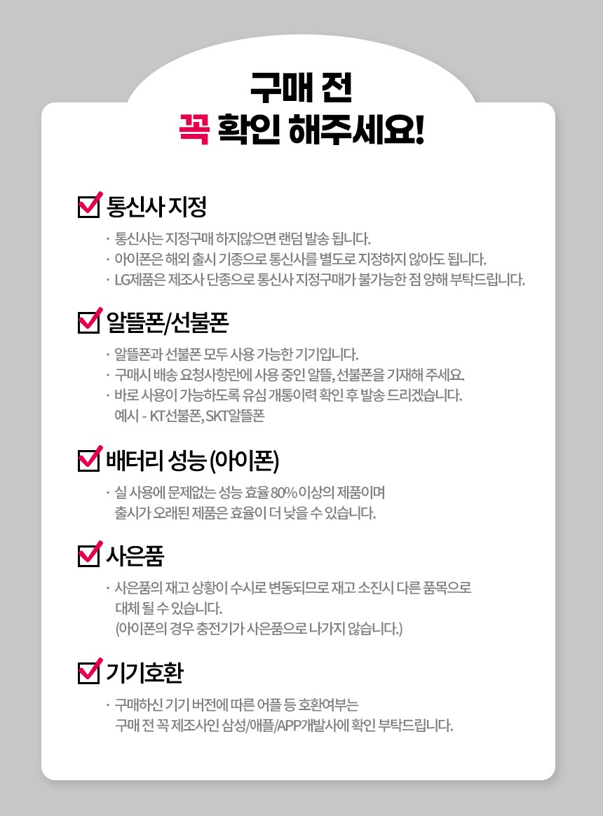 배터리는 소모성 제품으로 완충되지 않을 수 있습니다(충전게이지 50%이상시 단순변심 환불불가)