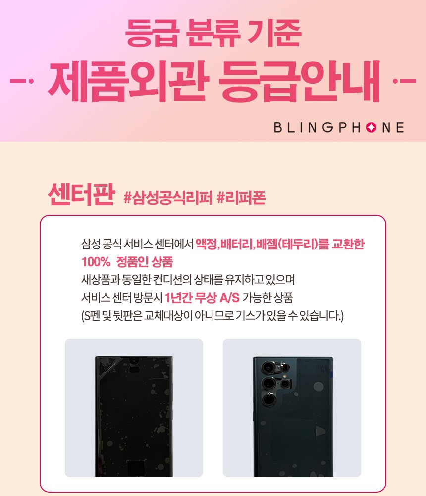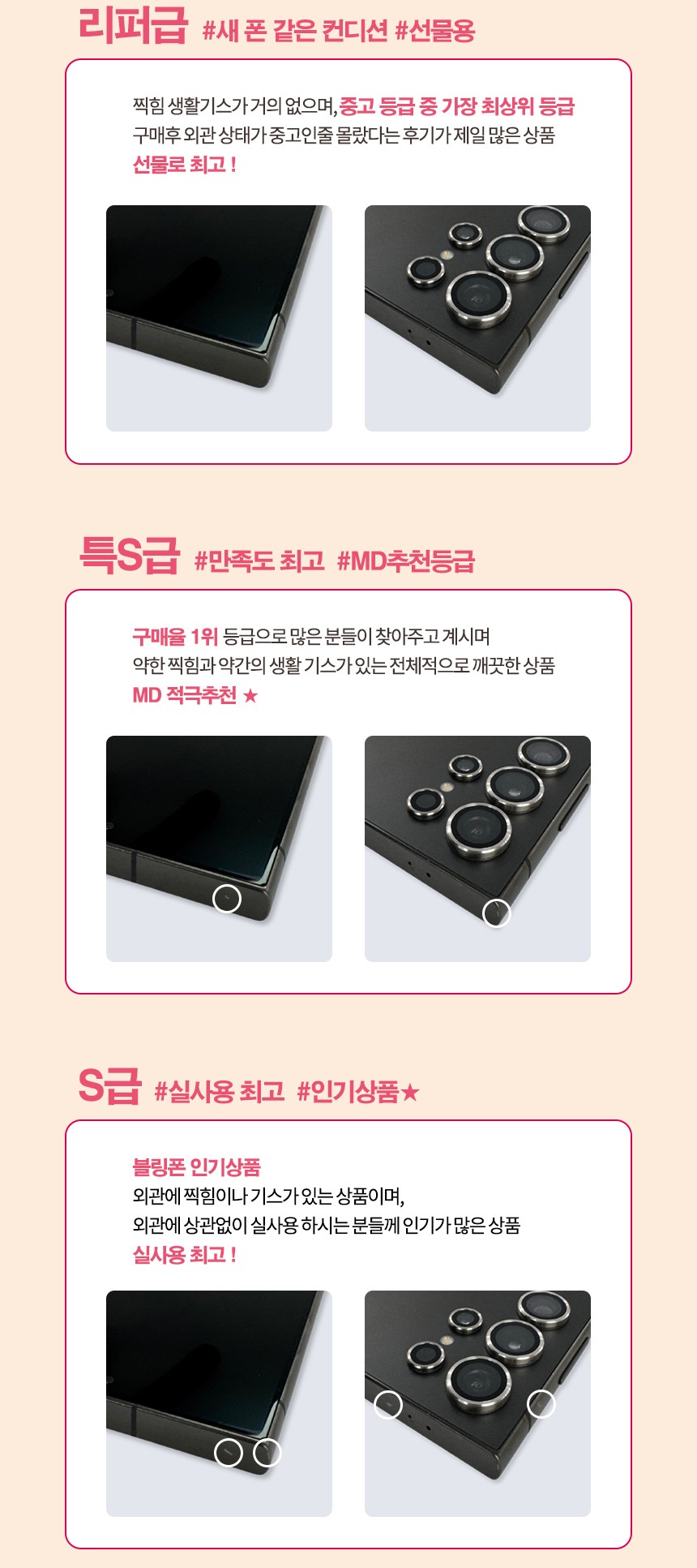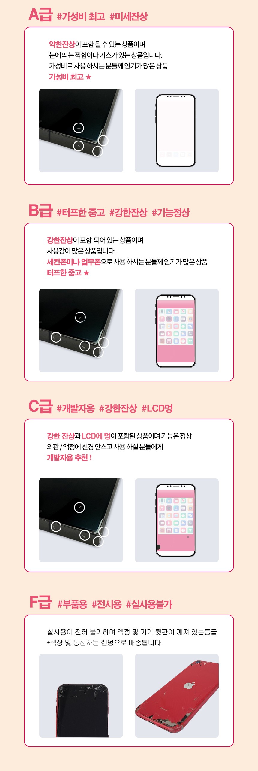 A급리퍼/해외리퍼 제품의 경우 눈에 띄지 않는 미세한 액정 멍, 불량화소로 인한 교환 및 단순변심 반품은 불가합니다.