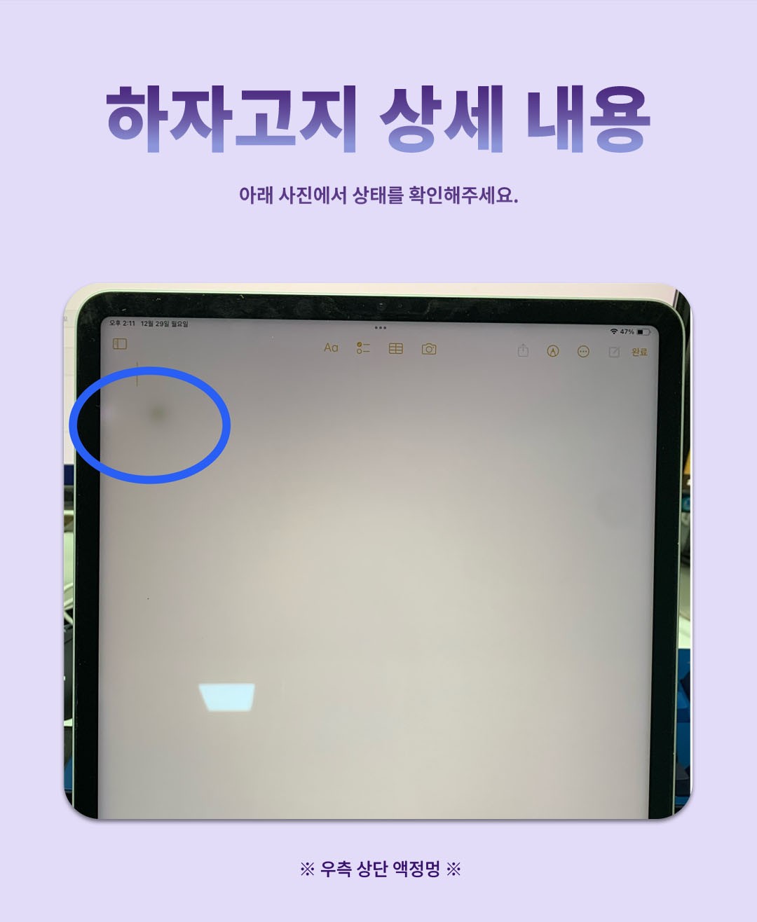 A급리퍼/해외리퍼 제품의 경우 눈에 띄지 않는 미세한 액정 멍, 불량화소로 인한 교환 및 단순변심 반품은 불가합니다.