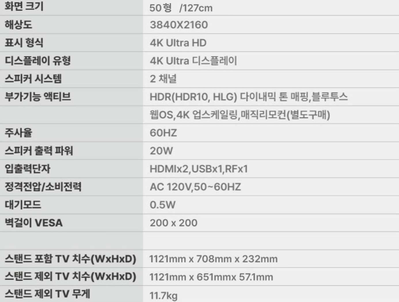50UQ7050/스마트TV/50인치/울트라HD