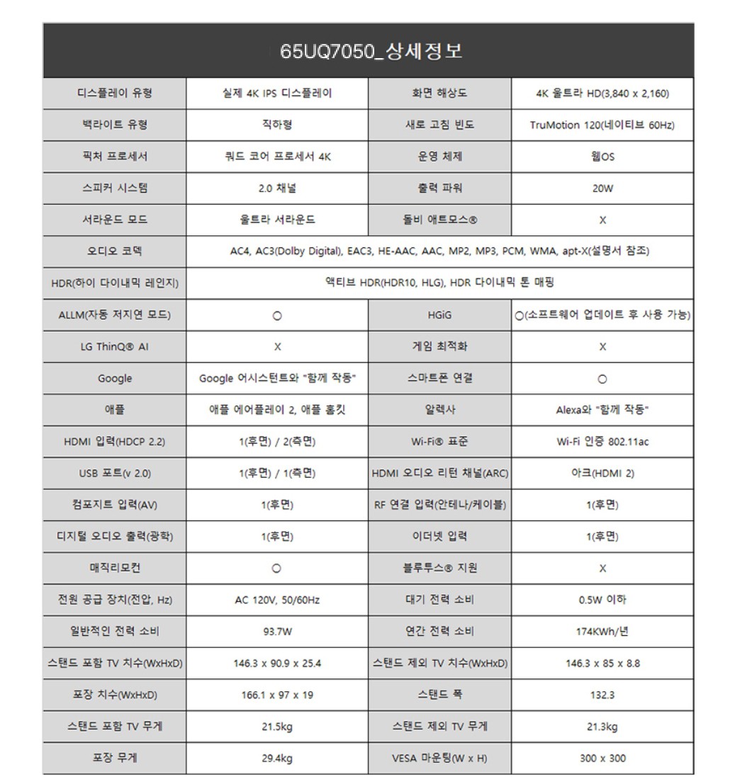65UQ7050/스마트TV/65인치/4K 울트라HD