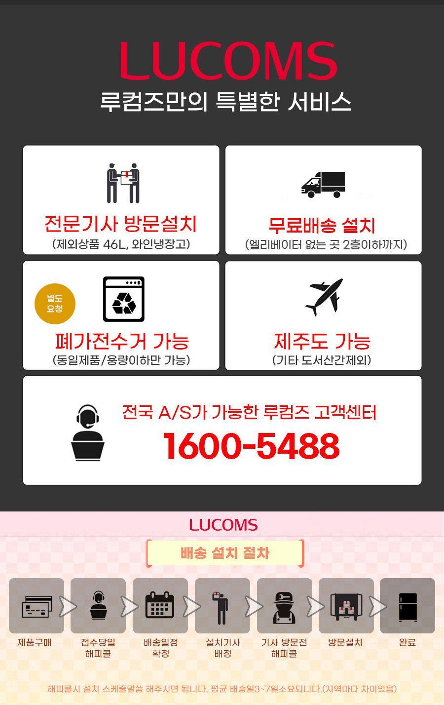 대형가전의 경우 설치장소 협소로 인한 설치 불가시 배송물류비는 고객님께서 부담하셔야 합니다. (구매전 사이즈확인 필수)