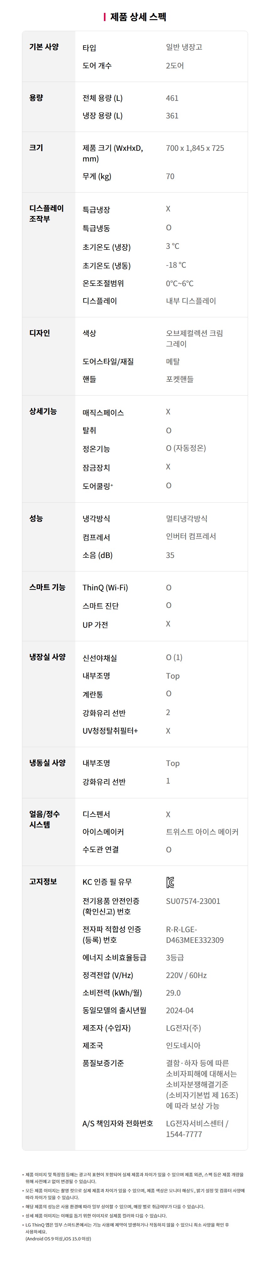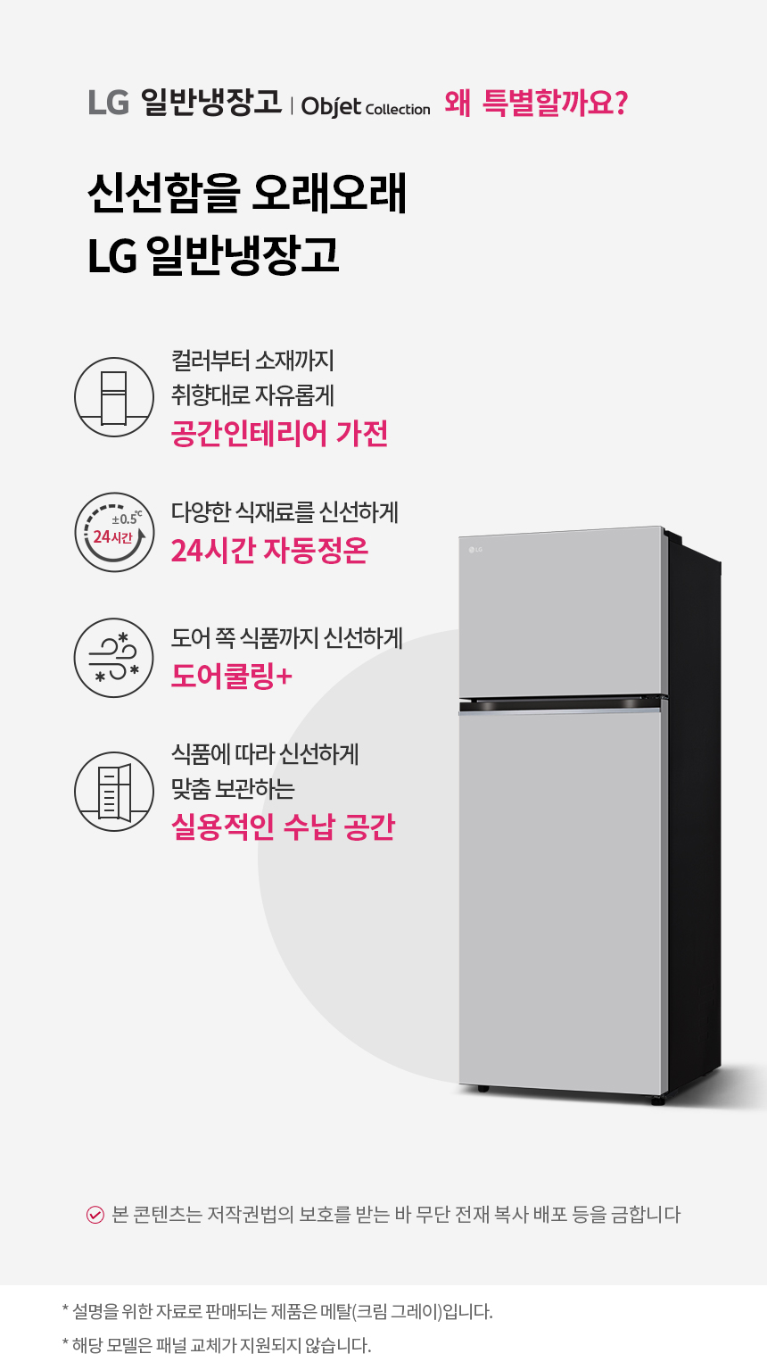 냉장고 461L/오브제컬렉션 크림 그레이/도어쿨링/ 24시간 자동정온