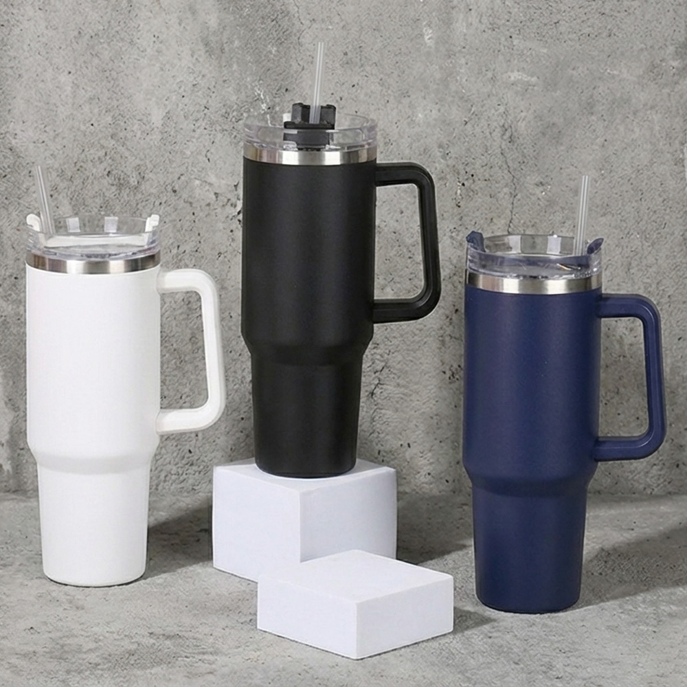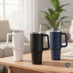 1,200ml/ 스테인레스 스틸 304 / 블랙, 화이트, 네이비 / 구성품: 텀블러 본체, 뚜껑, PE 재질 스트로우