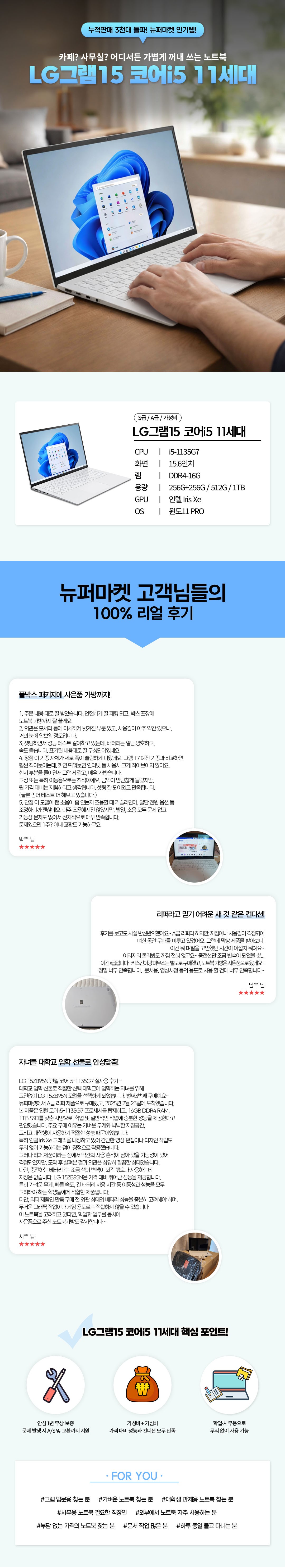 15Z95N,15ZB95N(인텔 코어i5-1135G7 @ 2.40GHz/DDR4-16G/SSD 256G/인텔 Iris Xe/윈도11PRO/화이트/풀박스패키지/가성비리퍼)