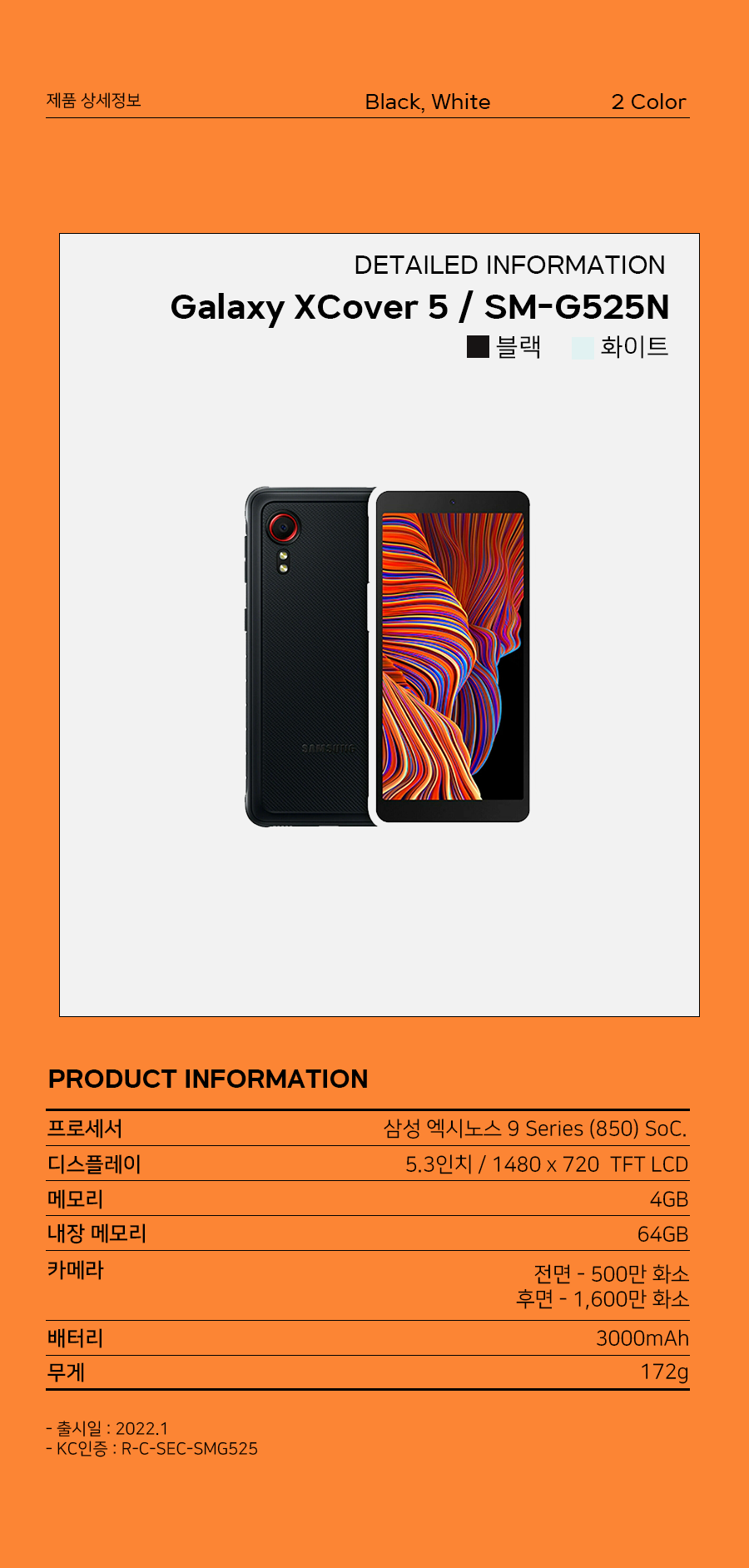SM-G525 엑스커버5 64G 키즈폰, 서브폰, 방수방진, 색상 선택가능