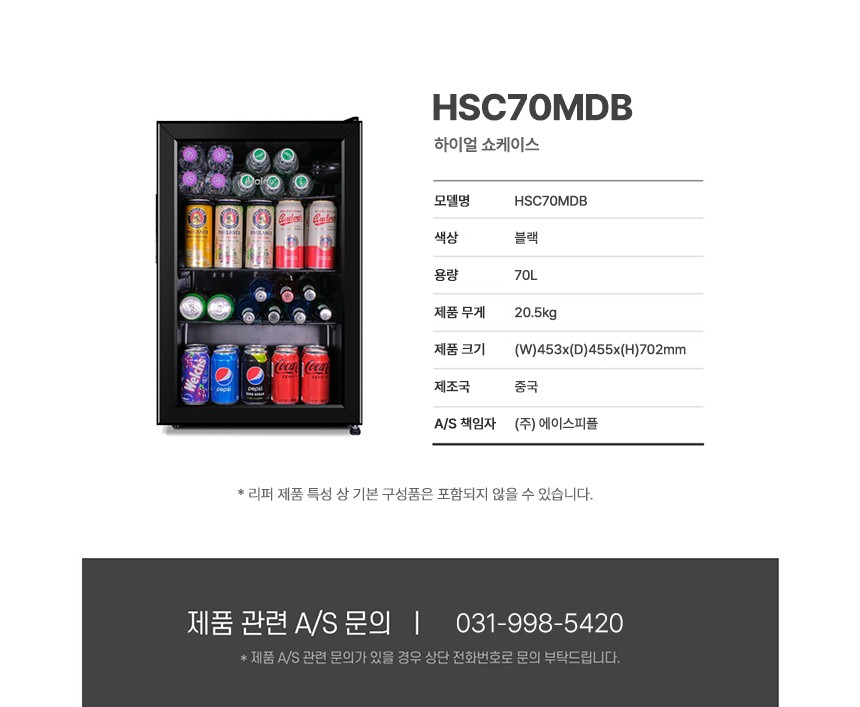 쇼케이스 냉장고 70L 블랙 (화물택배 / 제주도,도서산간지역 제외)