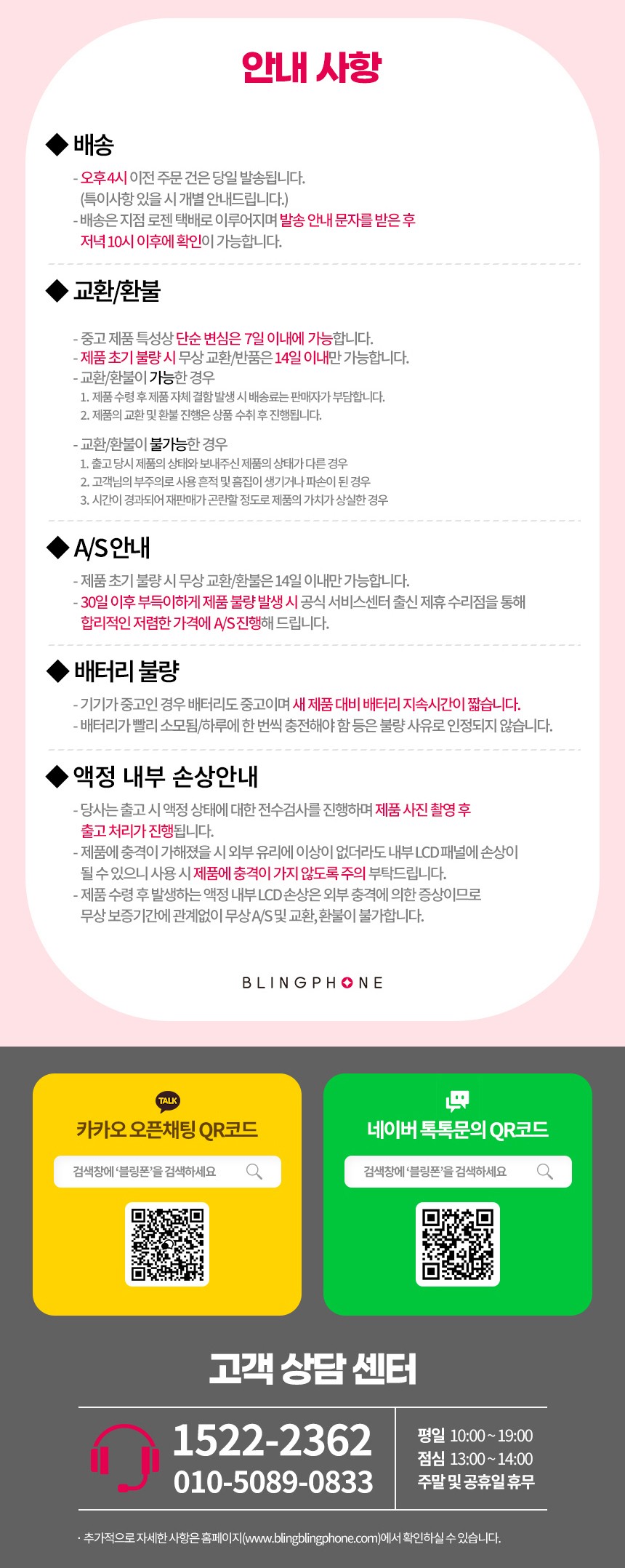 불량증상이 확인되지 않는 경우 왕복택배비용이 발생될 수 있습니다.