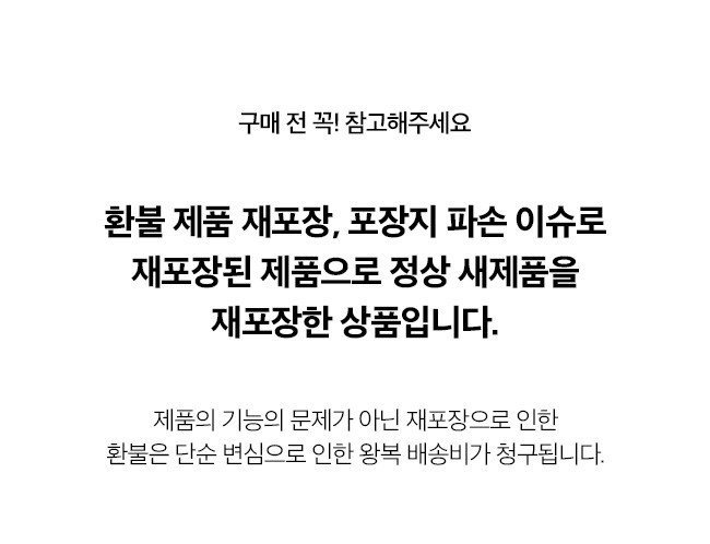 불량증상이 확인되지 않는 경우 왕복택배비용이 발생될 수 있습니다.