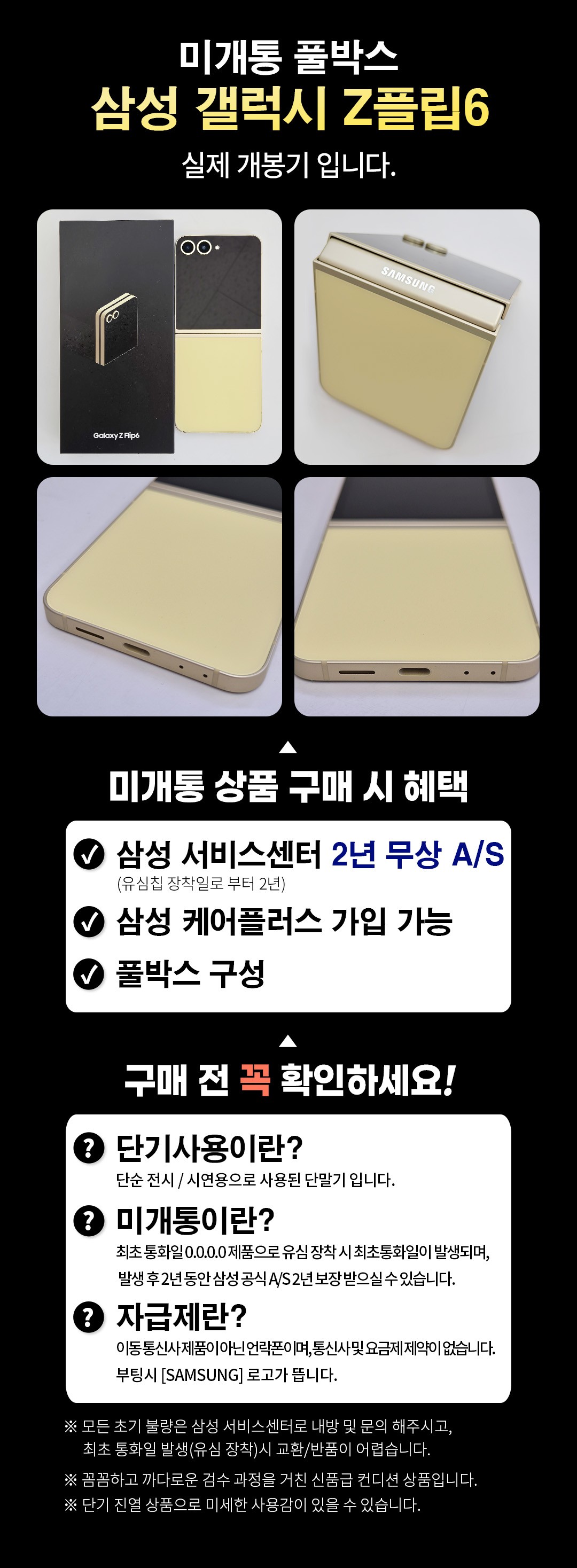 SM-F741 갤럭시Z플립6 256G / 자급제 / 단기사용 / 풀박스 패키지 / 미개통 상품