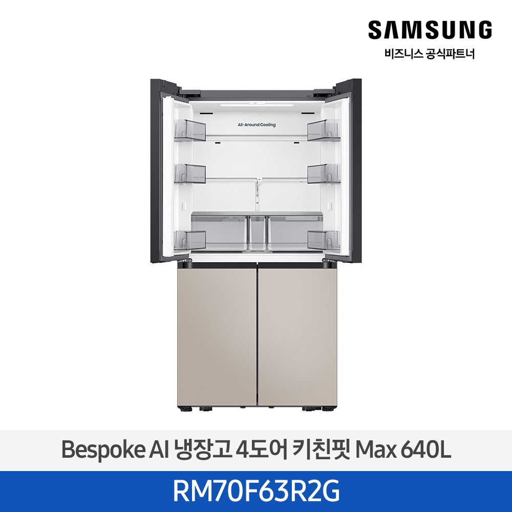 양문형냉장고/4도어/빌트인타입/총용량: 640L/냉장: 399L/냉동: 241L/2등급(25.03 기준)/AI절약모드/스마트싱스/WiFi/ [신선/보관] 미세자동정온/아이스메이커: 트레이/큐브(각얼음)/ [디자인] 재질: 에센셜(메탈)/색상: 에센셜베이지/후면핸들포함크기(가로x세로x깊이): 912x1853x697mm/후면핸들미포함크기(가로x세로x깊이): 912x1853x683mm