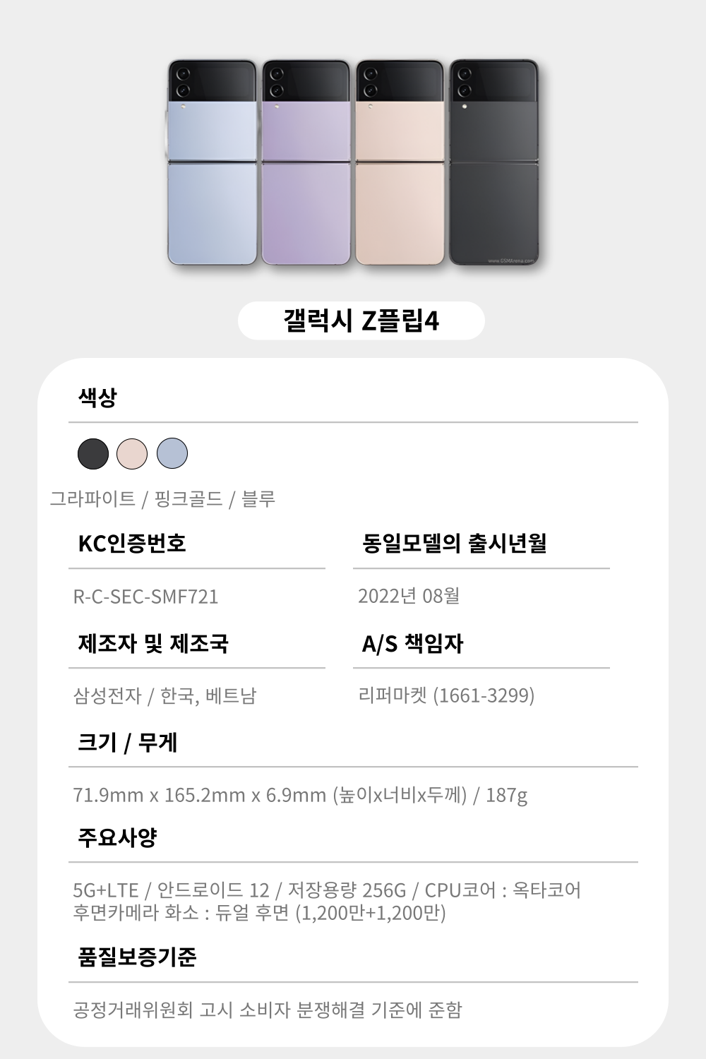 | 모델명 | SM-F721 | 출시연월 | 22년08월 |