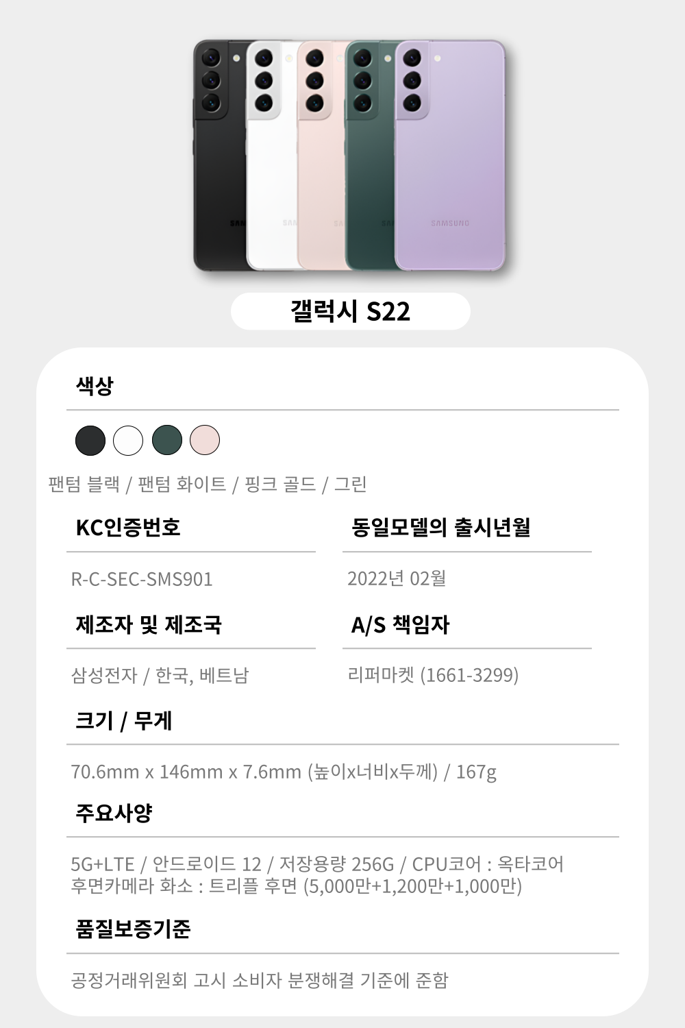| 모델명 | SM-S901 | 출시연월 | 22년2월 |