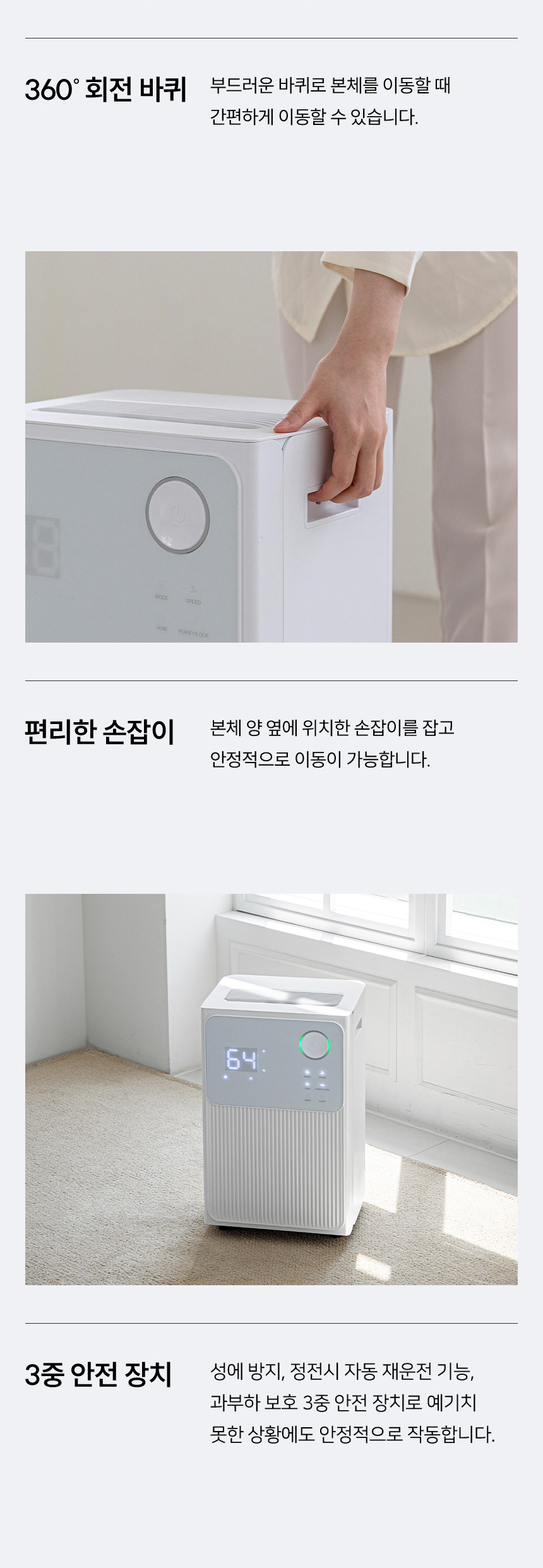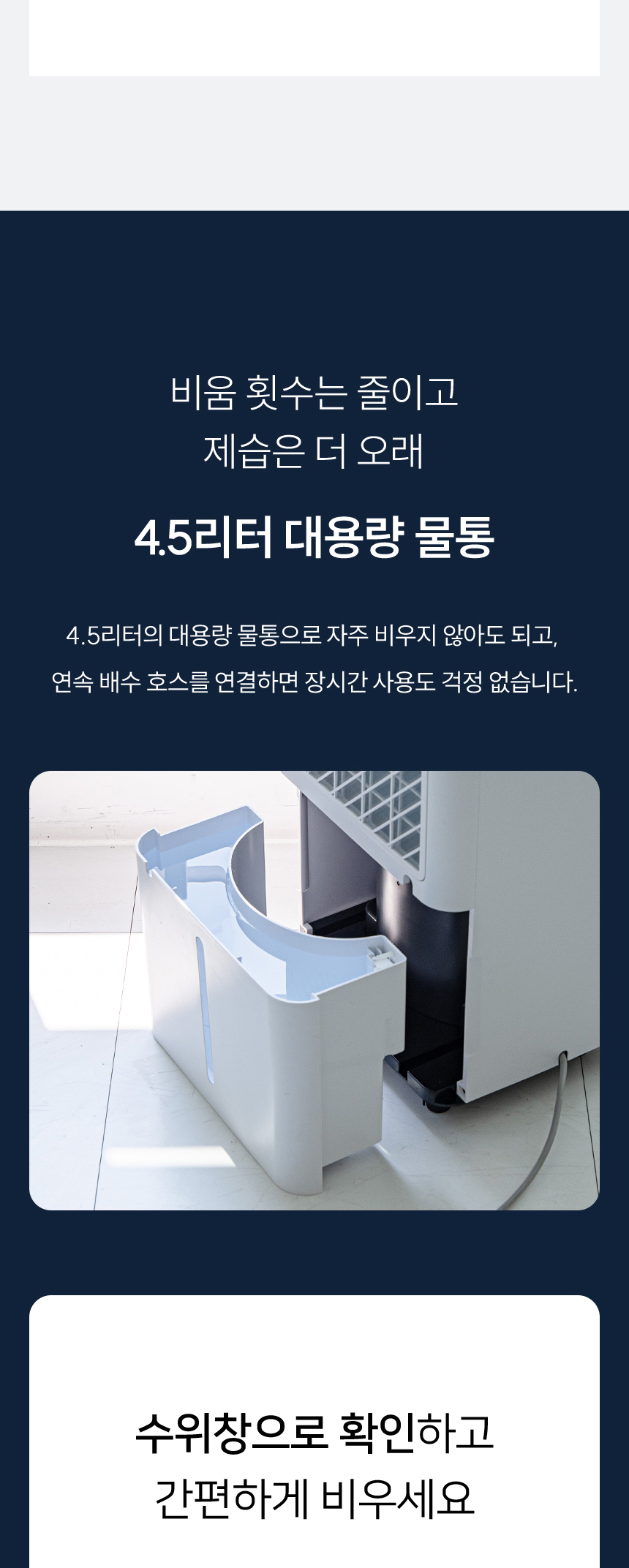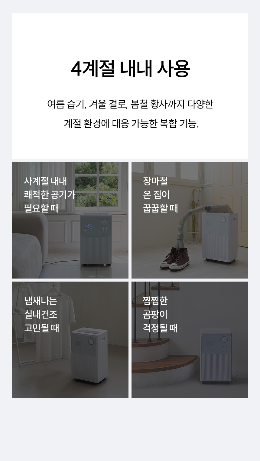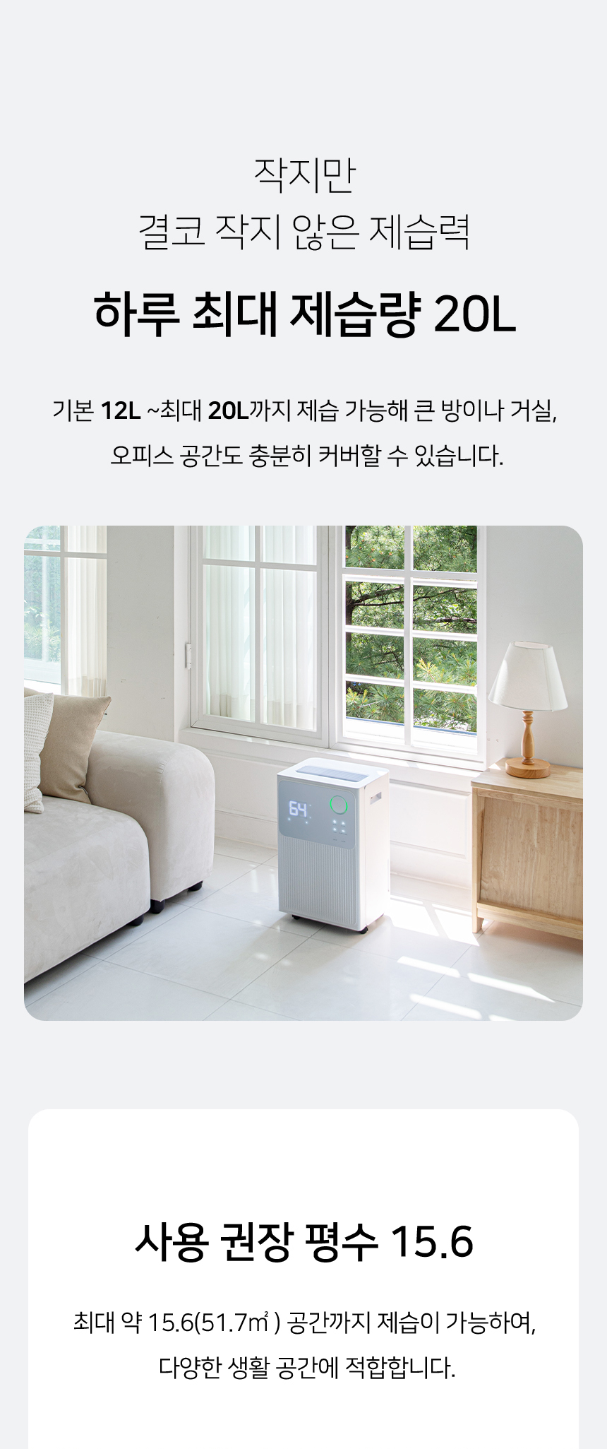 수치로 입증된 국민 제습기★ 감성적인 디자인은 기본, 성능과 스마트함은 한 단계 더! 스마트홈의 완성, 이제 습도까지 내 손안에! 저전력 모터로 전기료 걱정은 줄이고, 장마철 대비는 완벽하게! 지금, 롯데 제습기를 최저가로 만나보세요.