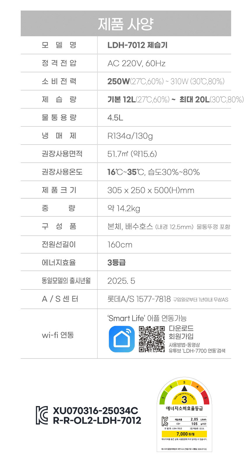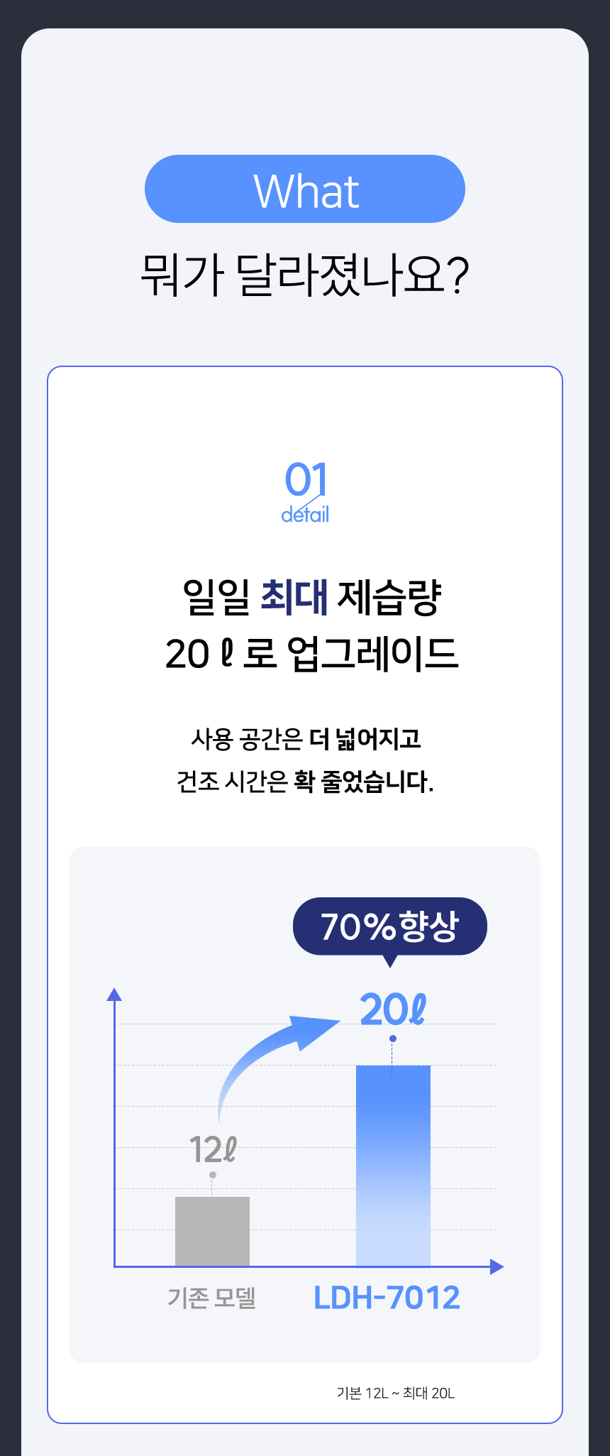 LDH-7012/제습기/최대20리터/IOT 스마트 원격제어/ 물통용량 4.5L
