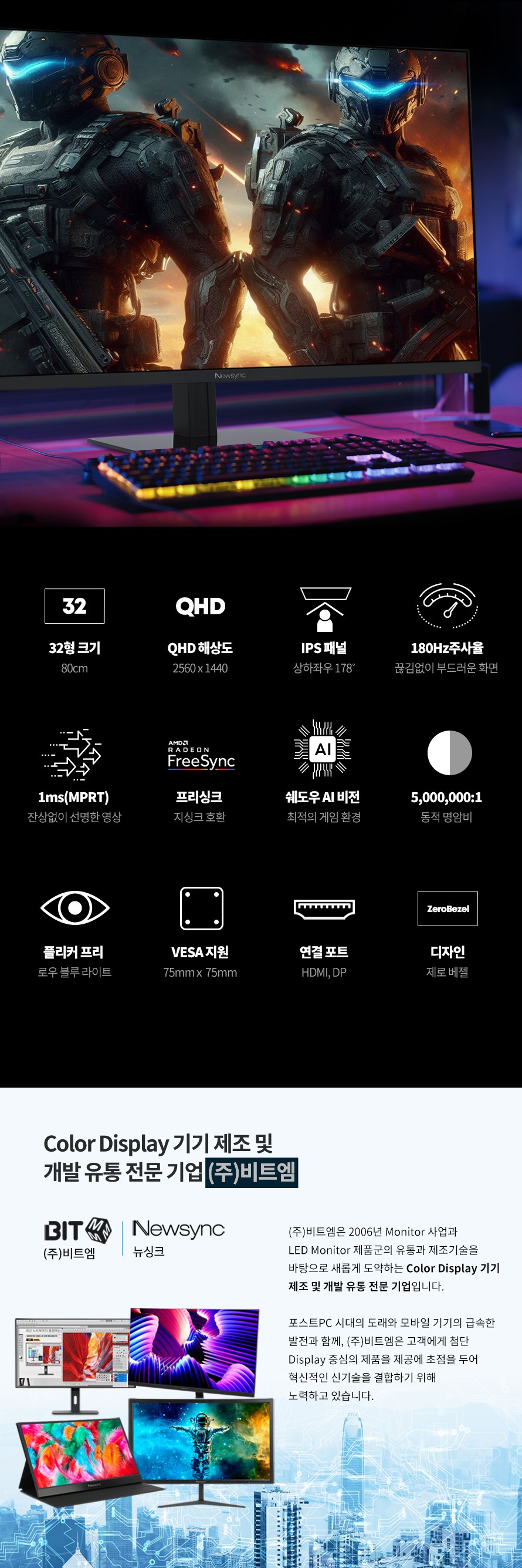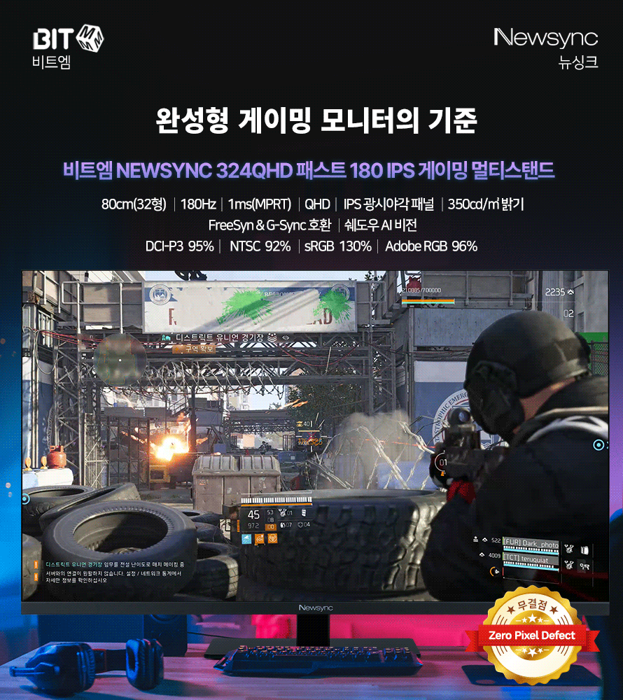 비트엠 Newsync 324QHD 패스트 180 IPS 게이밍 멀티스탠드 무결점
