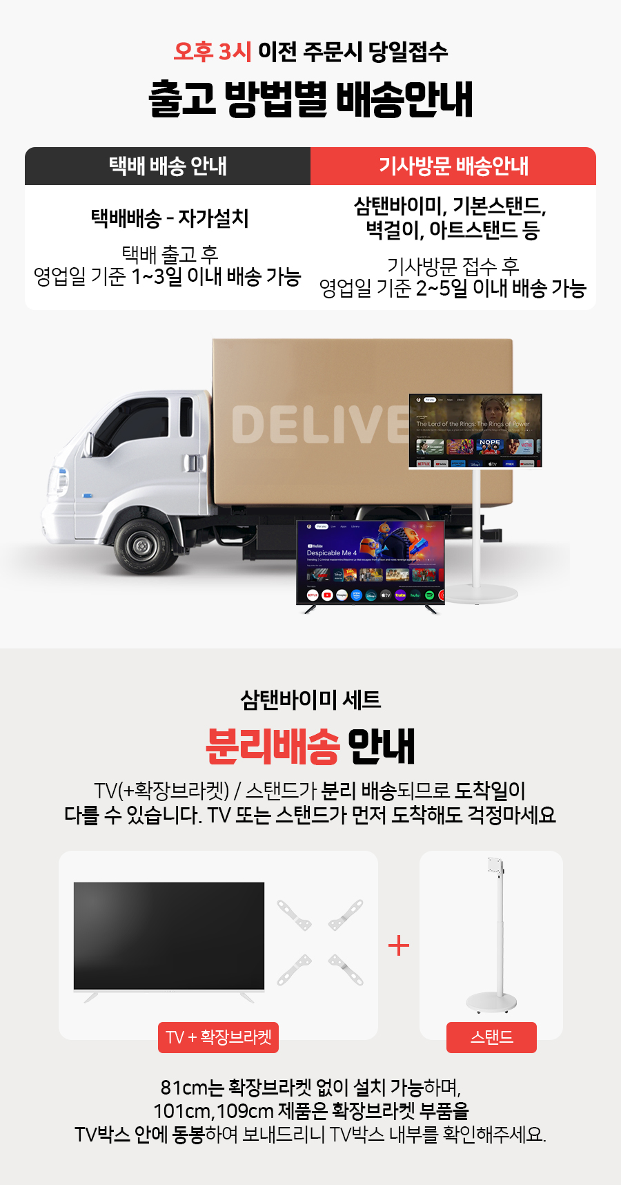 대형가전이나 화물배송 상품의 경우, 추가비용이 발생할 수 있습니다.(옵션선택)