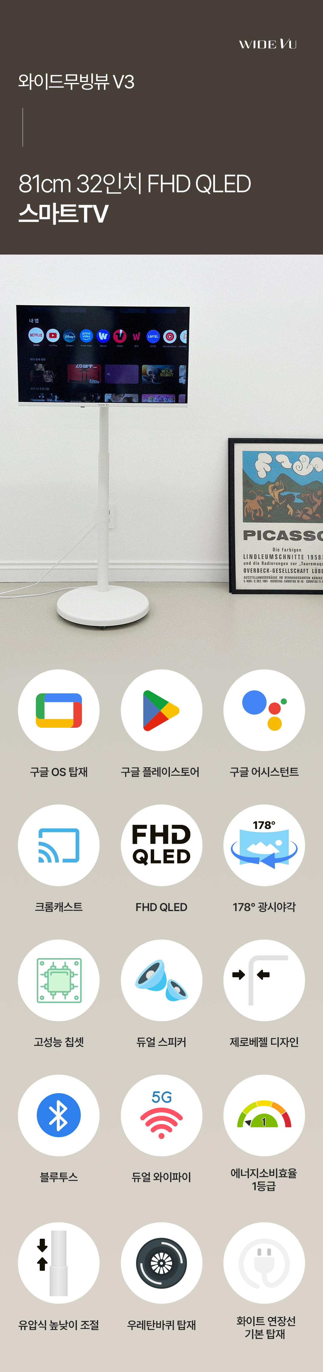 블랙, 화이트, QLED FHD, 삼탠세트/32인치