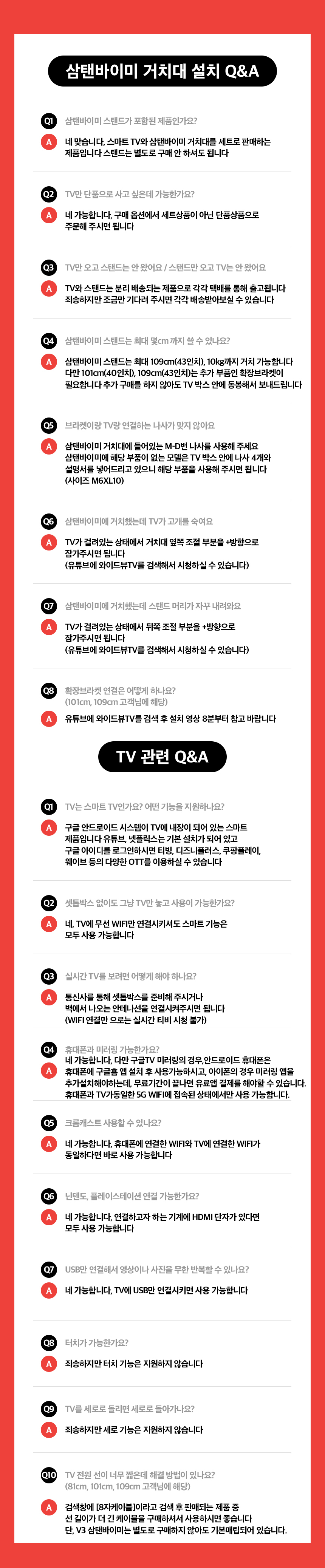 TV벽걸이 설치를 위한 작업완료 이후 제품을 환불할 경우 벽타공의 보상은 지급하지 않습니다.